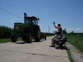 Pidimme juomatauon peltojen välissä vanhalla Route 66:lla. Tulipahan morjestettua John Deere kuskin kanssa siinä samalla.
