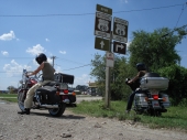 Kruisailimme pikkuteitä. Näimme maissipeltoja ja muuta maaseutua. Ajoimme pätkän jotain historiallista tiilipäällysteistä pikkutietä. Turvallisuudesta oli taas pakko hieman tinkiä ja ajotakit joutuivat matkatavaraosastolle. Ajelu muuttui heti hikisestä tuskasta mukavaksi kruisailuksi. Ajokamat ovat vain yksinkertaisesti liian kuumat näille lämpötiloille. Ihmisetkään eivät enää tuijotelleen kuin vajaamielisiä. Allekirjoittaneen oikeiksi ajovarusteiksi jäivät sentään kypärä ja saappaat. Muut pärjäsivät ilman kunnon saappaitakin. Hieman epäturvallista ehkä mutta eipähän kuolla nestehukkaan.